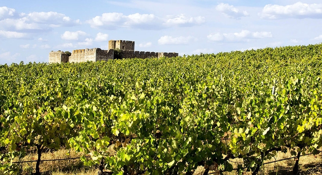 Though it is what there is between the towns that ought to interest you more in the Alentejo. A long hilly landscape of yellow fields with twisting cork trees dropping down pools of shade and, off in the fields, the centuries-old houses alone out against the sun. Or where a winemaker practices, there are vineyards visible from the tops of the hills that spread on for the next three hilltops. From the public road, some palm tree lined access road breaks the vine cover and leads to the winemaker’s paradisiacal house on one of the hilltops.